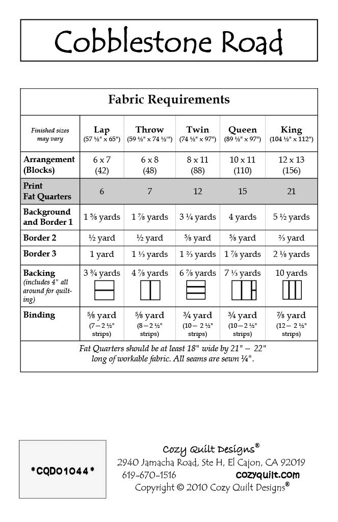 What a great way to use fat quarters! Combine your favorite bundles with a contrasting background fabric and you can create your own Cobblestone Road. Best of all, it is fun and easy!