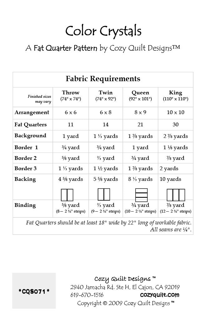 This classic design is a great way to use those sophisticated fat quarter bundles! The background gives the pattern shape, letting the colors of the fat quarters dazzle and sparkle like color crystals.
