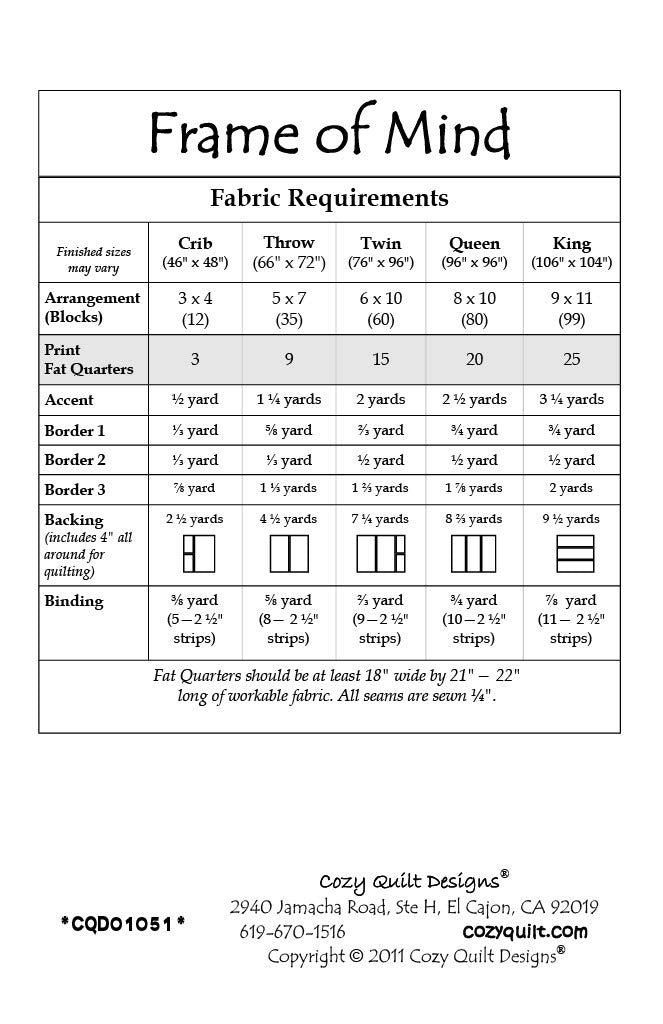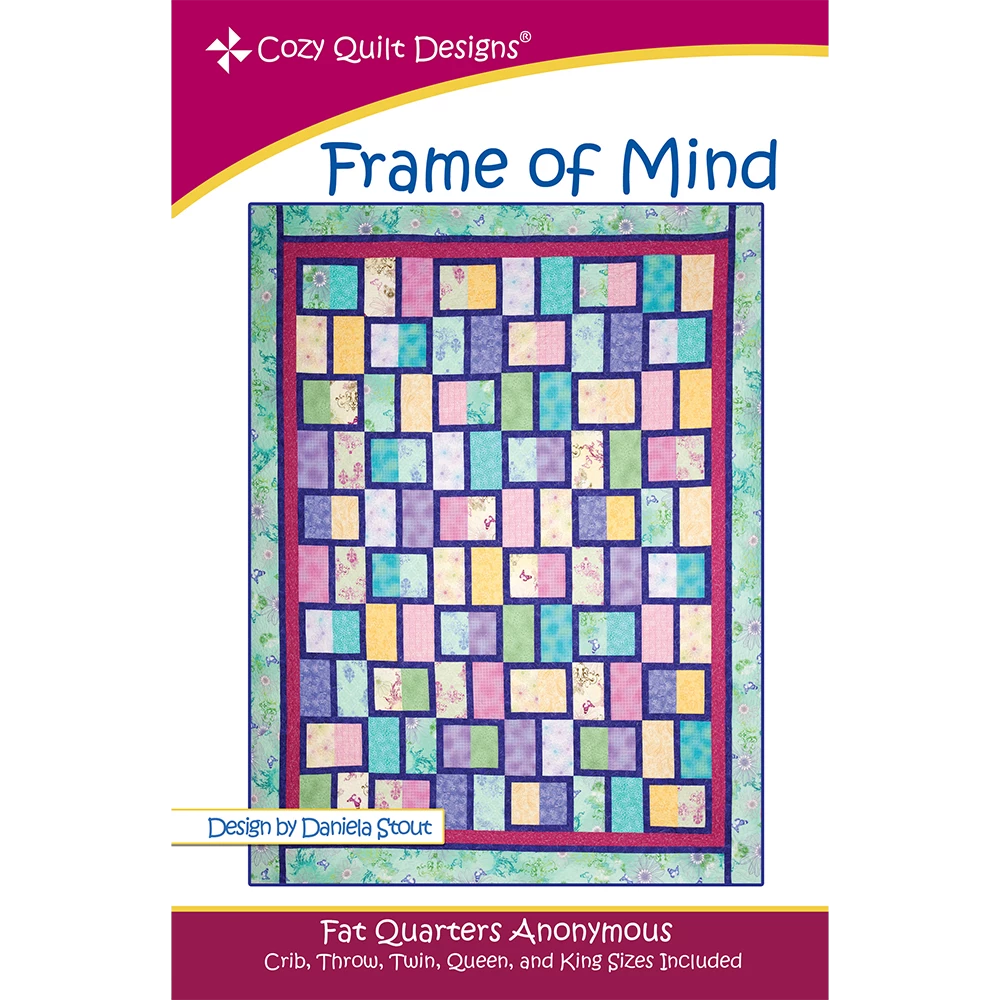 Frame of Mind is a fantastic pattern to show off novelty prints, conversational fabrics or any bundle of fat quarters. With an accent fabric that frames them all together, it comes together quickly and easily!