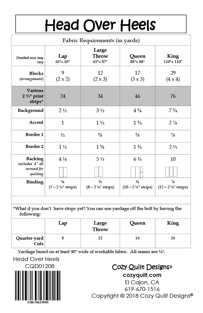 In true Cozy style, this simple pattern uses 2½" Strips to create a quilt with lovely pinwheels that you will surely fall Head Over Heels for!