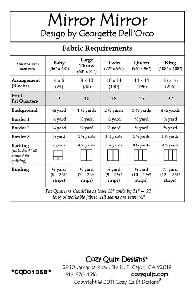 What a great way to turn a fat quarter bundle into a quilt even a princess would adore. Mirror Mirror gives a reflection illusion while creating a pleasing design and a great way to use those fat quarter morsels we love so much!
