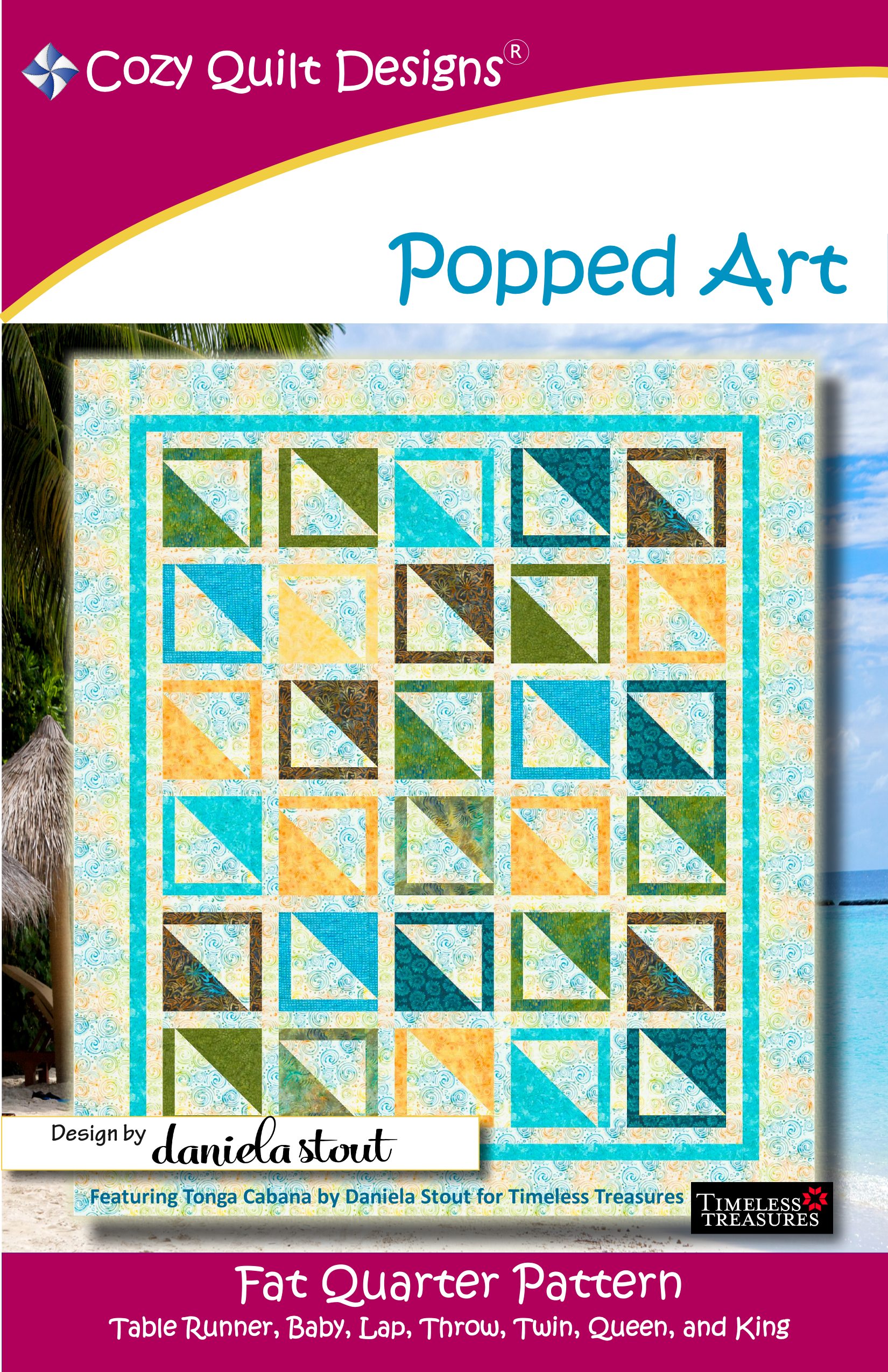 Popped Art is a modern new Fat Quarter Quilt for your pattern library! Big, half-filled blocks alternate across the quilt, making it intriguing, yet still simple! Using batiks, we were able to get a wonderful effect in our sample.
