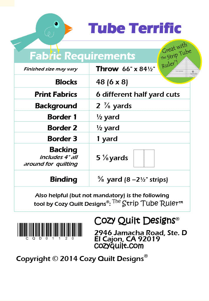 Tube Terrific, from Cozy Quilt Designs’ new Sew Chicks line, is a fun and simple project with a classic look! All you need is 6 ½ cuts and your background fabric! Pick a wide variety of accent colors to give it your own custom look, or do single colors. The possibilities are endless!